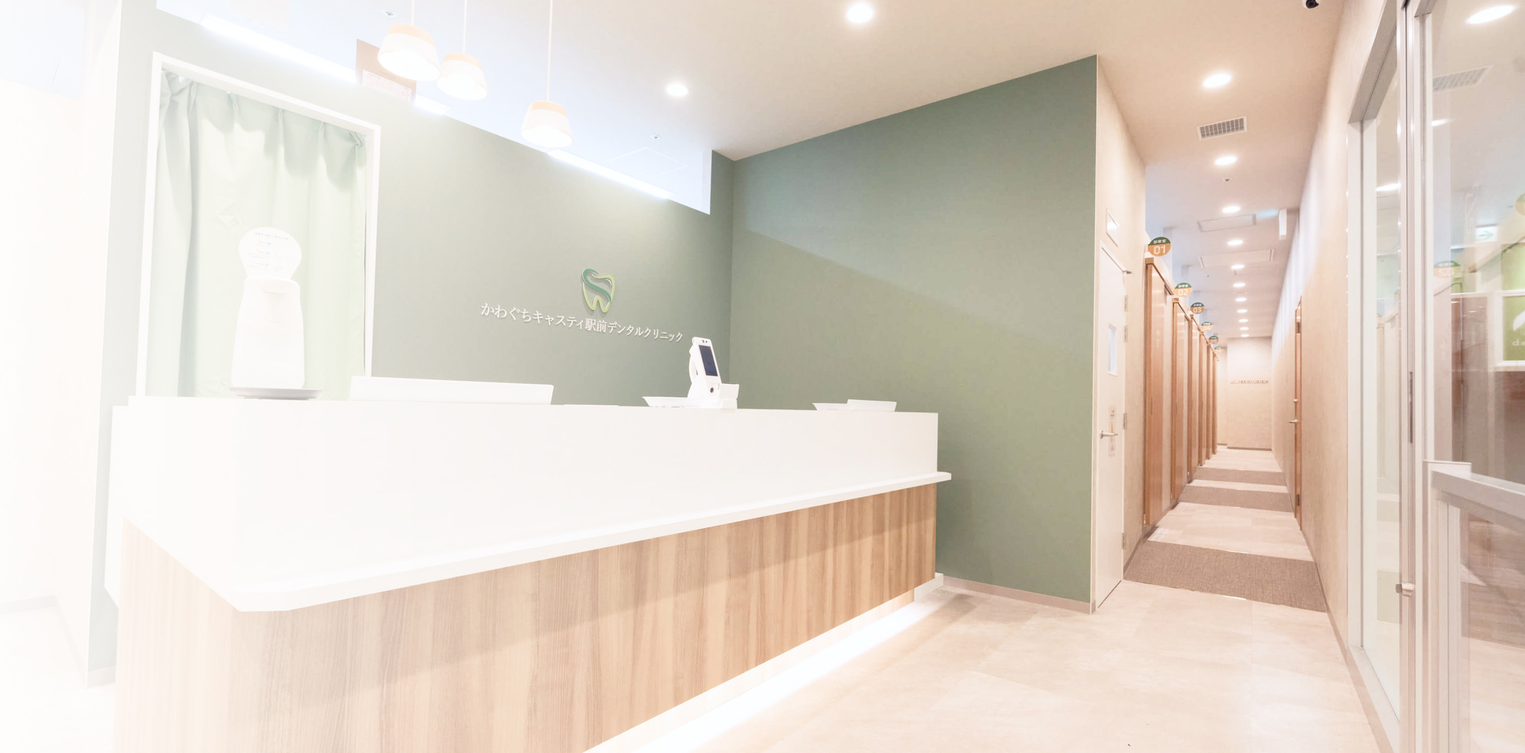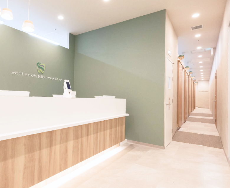 川口駅から徒歩1分にある歯医者。急な歯のトラブルに迅速に対応するため、事前予約なしでもご来院いただけます。