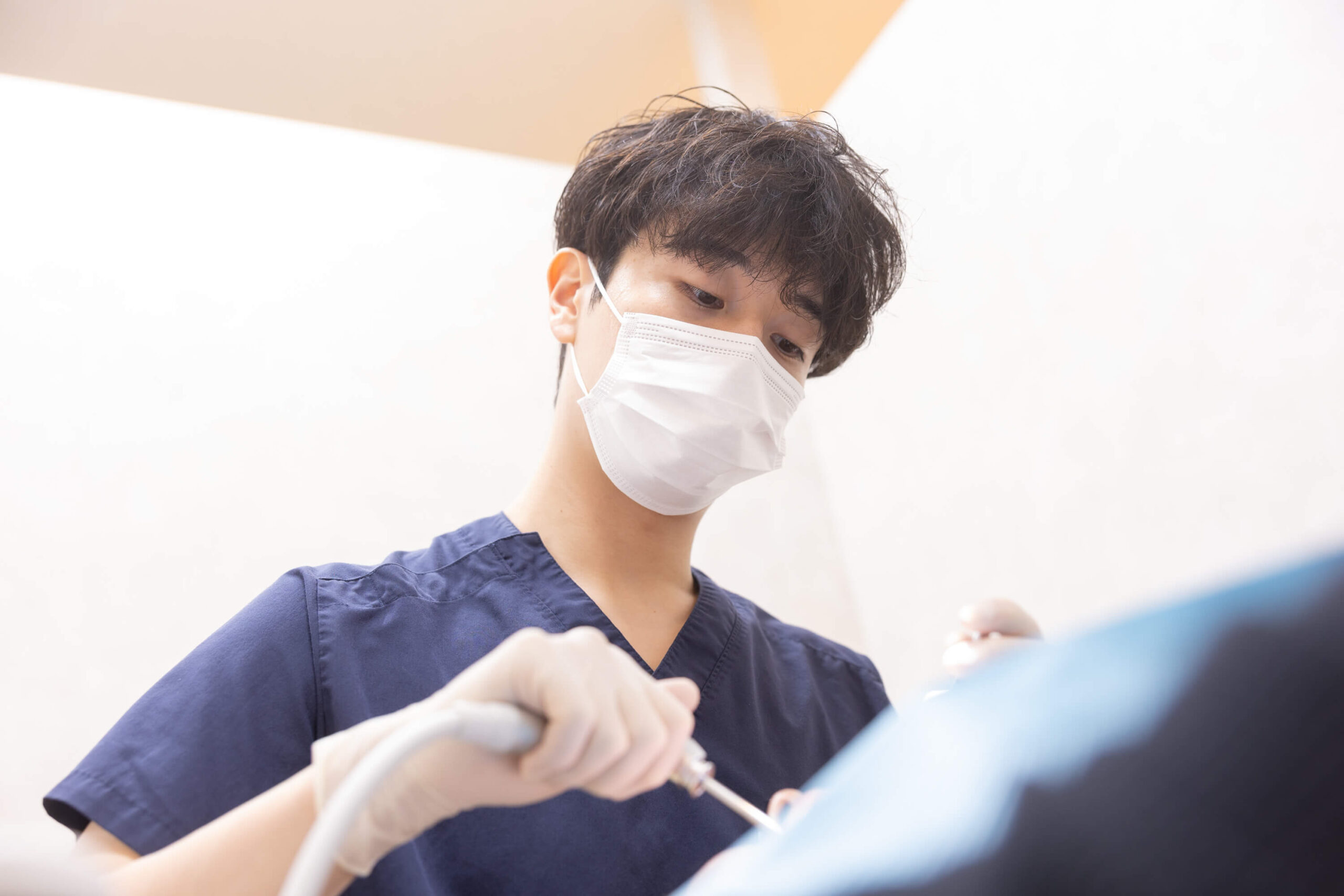 お口の中が清潔で炎症のない状態であることを確認したうえで、治療を開始します。局部麻酔を行ったあと、顎の骨にインプラントを埋め込みます。このインプラントが新しい歯の土台となります。